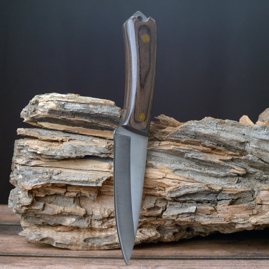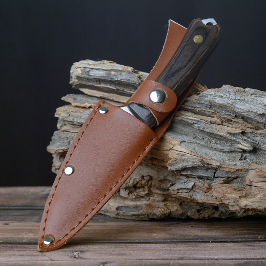Туристический нож выполнен из нержавеющей стали, которая является отличным выбором для тех, кто ищет надежный и долговечный нож с превосходной антикоррозионной стойкостью. Сталь обладает высокой твердостью, что позволяет клинку длительное время оставаться острым, обеспечивая эффективную резку и точность при выполнении различных задач. Благодаря своим характеристикам клинок легко справляется с различными материалами, будь то пища, веревка или древесина. Деревянная рукоять ножа имеет естественную текстуру, цвет и уникальные узоры, что придает ножу неповторимый и привлекательный внешний вид.