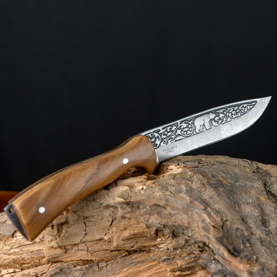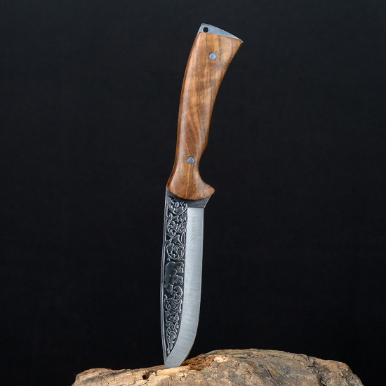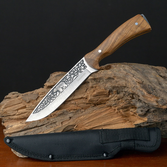 Туристический нож выполнен из нержавеющей стали, которая является отличным выбором для тех, кто ищет надежный и долговечный нож с превосходной антикоррозионной стойкостью. Сталь обладает высокой твердостью, что позволяет клинку длительное время оставаться острым, обеспечивая эффективную резку и точность при выполнении различных задач. Благодаря своим характеристикам клинок легко справляется с различными материалами, будь то пища, веревка или древесина. Деревянная рукоять ножа имеет естественную текстуру, цвет и уникальные узоры, что придает ножу неповторимый и привлекательный внешний вид.