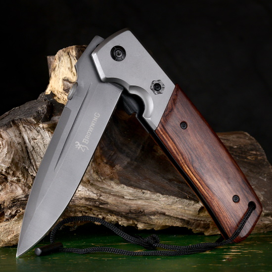Хорошая модель походного складного ножа от американской компании Browning популярна среди охотников и рыболовов за счет удачного сочетания неплохих эксплуатационных характеристик и качества исполнения всей конструкции туристического ножа. Рукоять выполнена из прочного металла со вставками благородного красного дерева, что выгодно подчеркивает дизайн представленной модели. Четкие требования к производству и строгий контроль на всех этапах изготовления делает модель ножа не только долговечной, но и качественной.