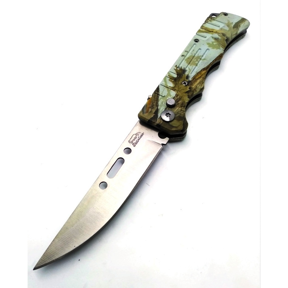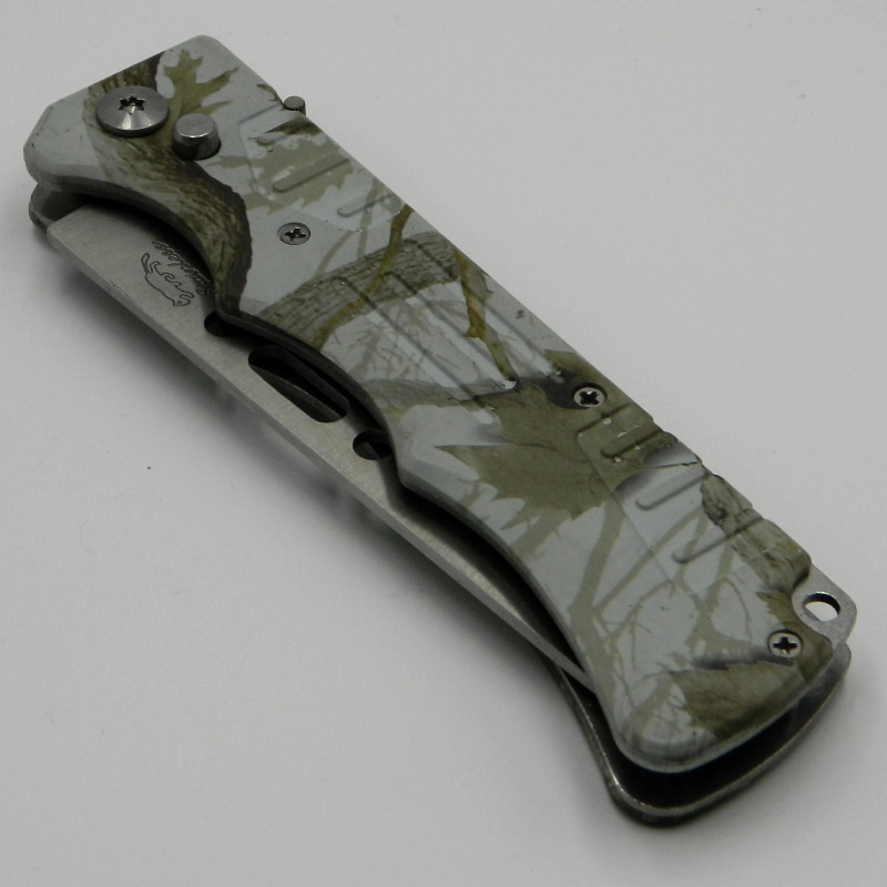 Очень качественный выкидной нож. На нем есть предохранитель, который защищает от случайного открывания ножа