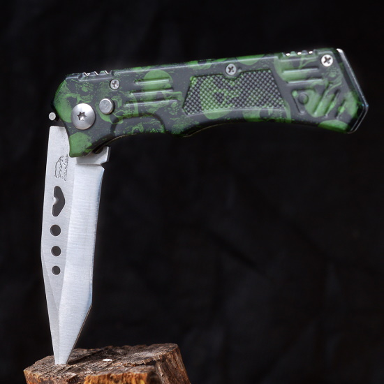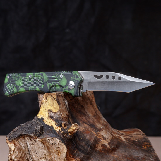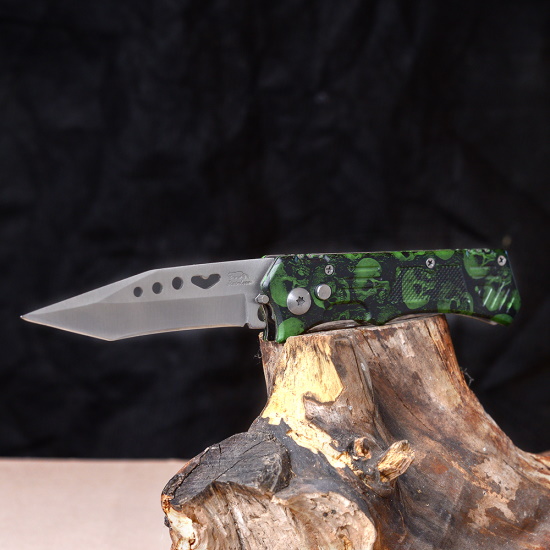 Нож складной зеленый Черепа