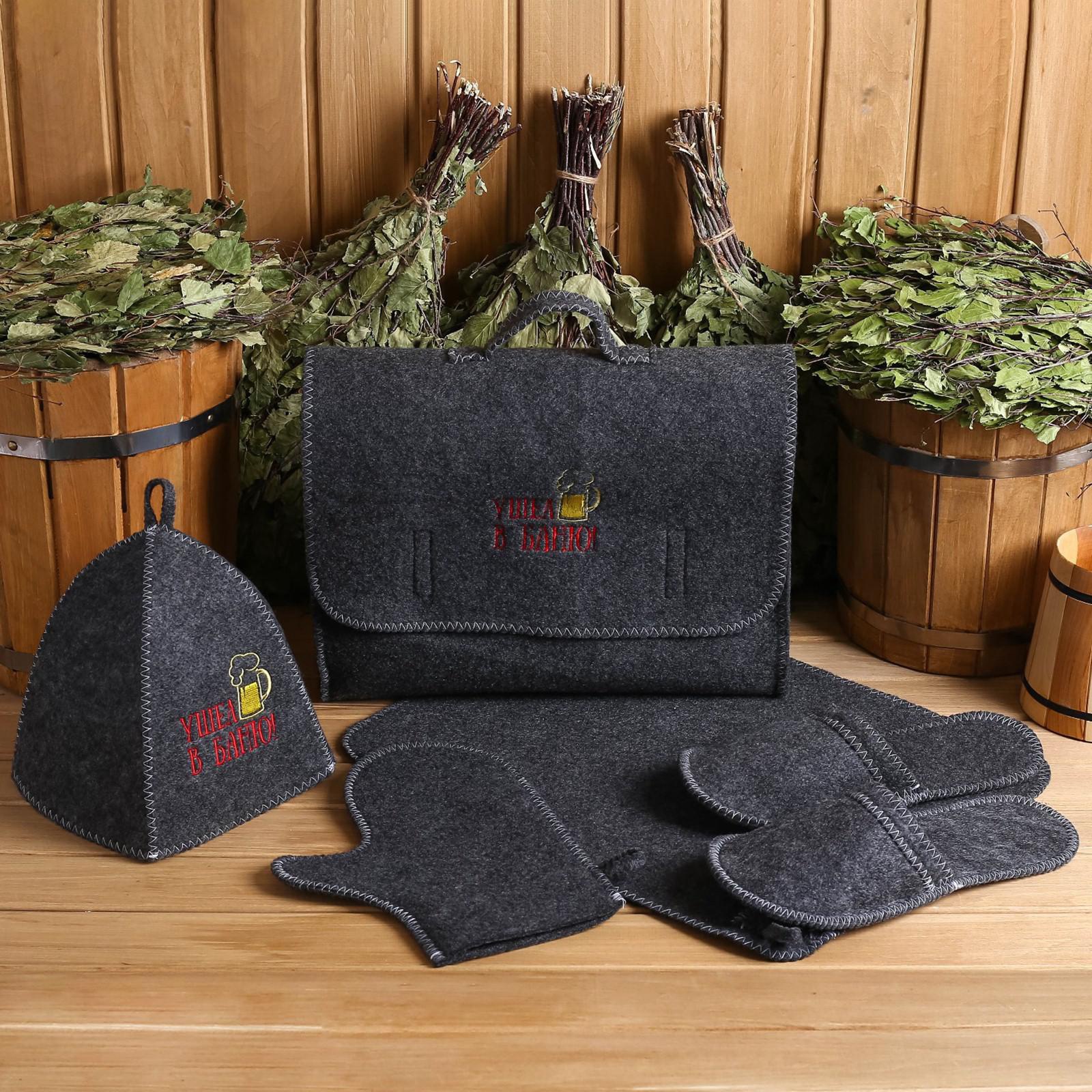 Набор банный портфель 5 предметов "Ушел в баню", серый