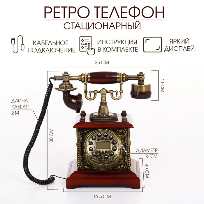 Ретро-телефон, громкая связь, 16.5×30 см