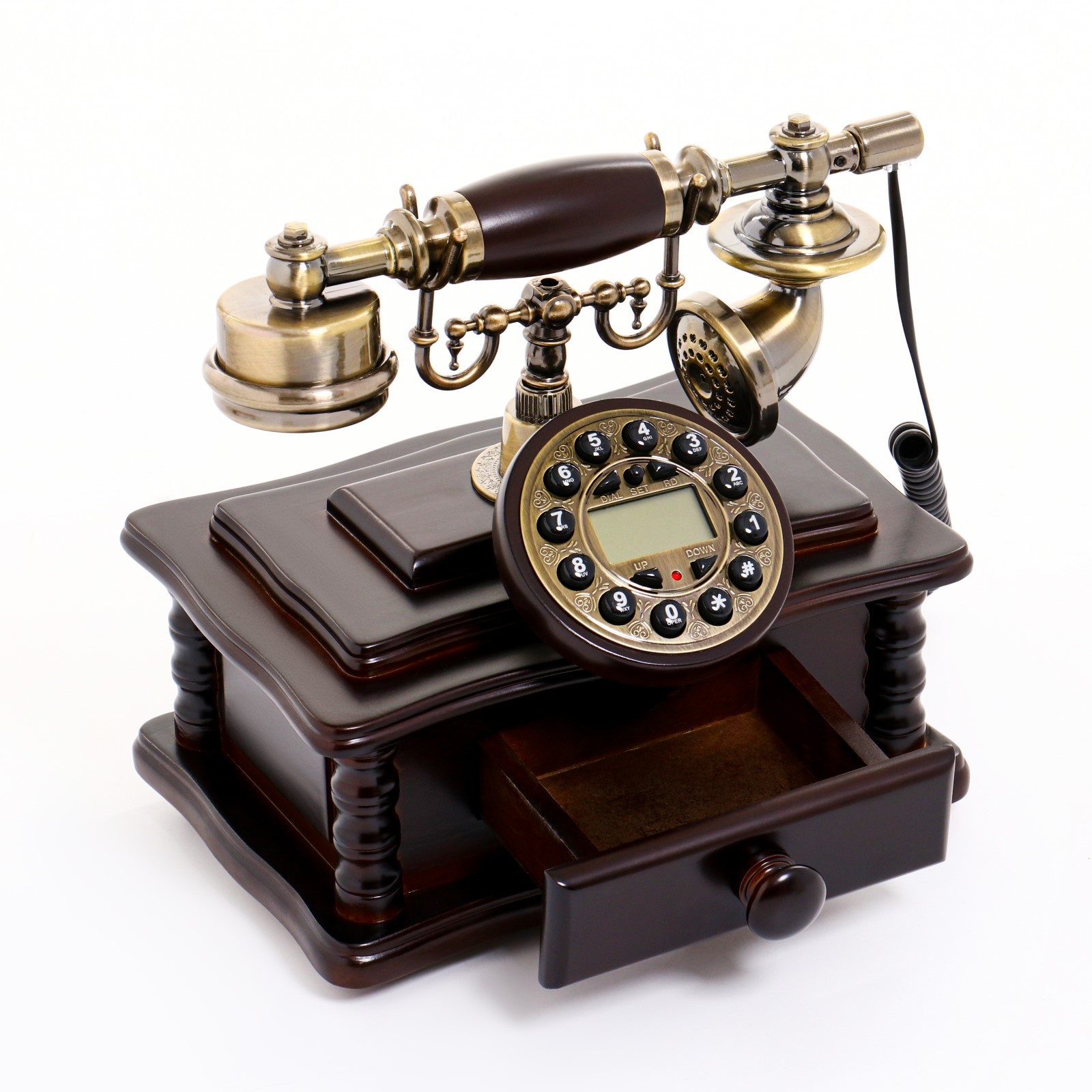 Изготовленный из высококачественных материалов, наш ретро-телефон привлекает внимание своей утонченной отделкой и выразительными линиями. Такой телефон станет идеальным акцентом в любом интерьере — от уютной гостиной до строгого офисного пространства. Его винтажный вид, дополненный элегантной ручкой и механическими кнопками, создает эффект возвращения в золотую эру телекоммуникаций.
