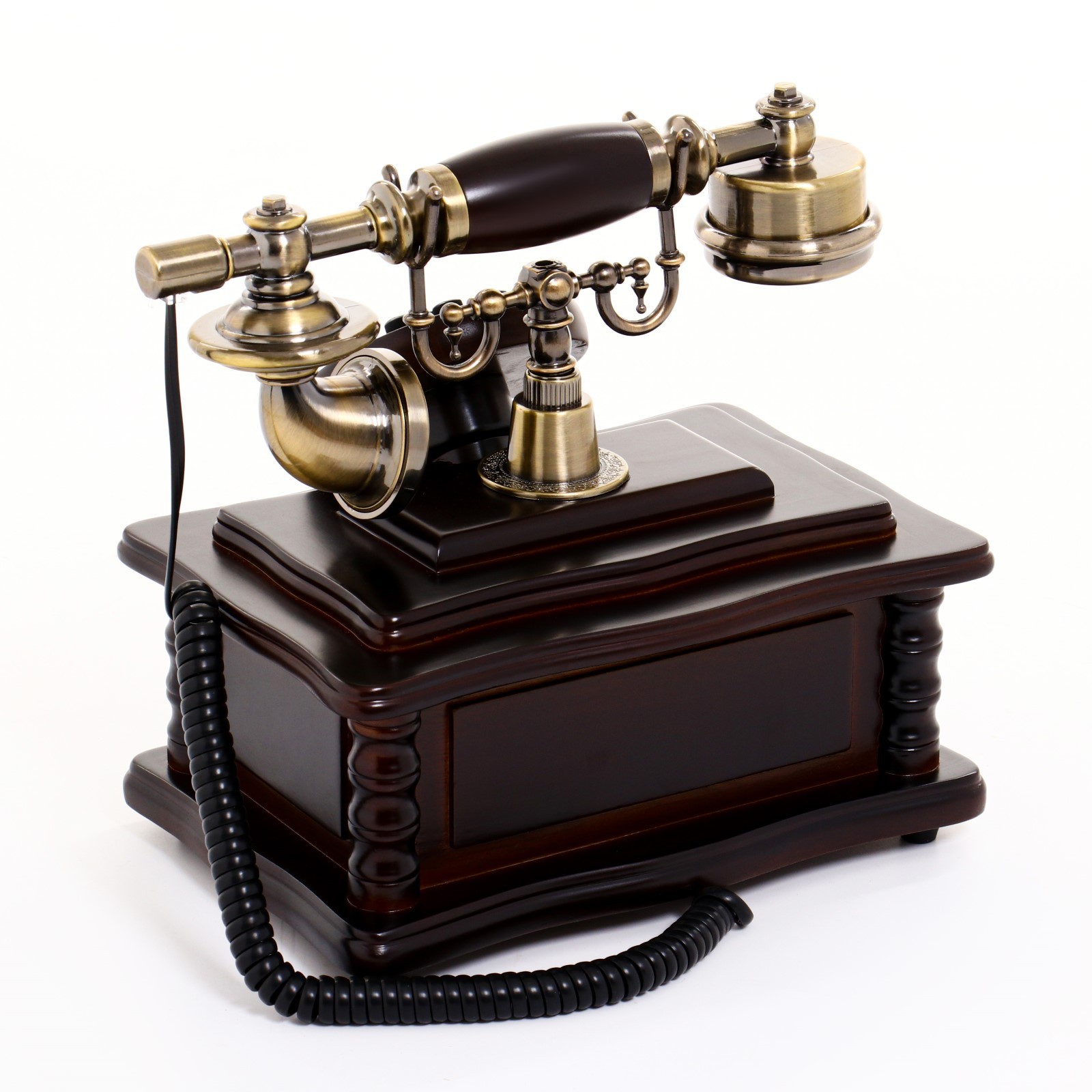 С легкостью подключаемый к современным сетям, этот телефон сохранит все прелести традиционного звона, обеспечив при этом высокое качество связи. Подарите себе или близким неповторимый штрих исторической атмосферы, выбрав наш ретро-телефон — идеальное сочетание стиля и функциональности для ценителей уникальных вещей.