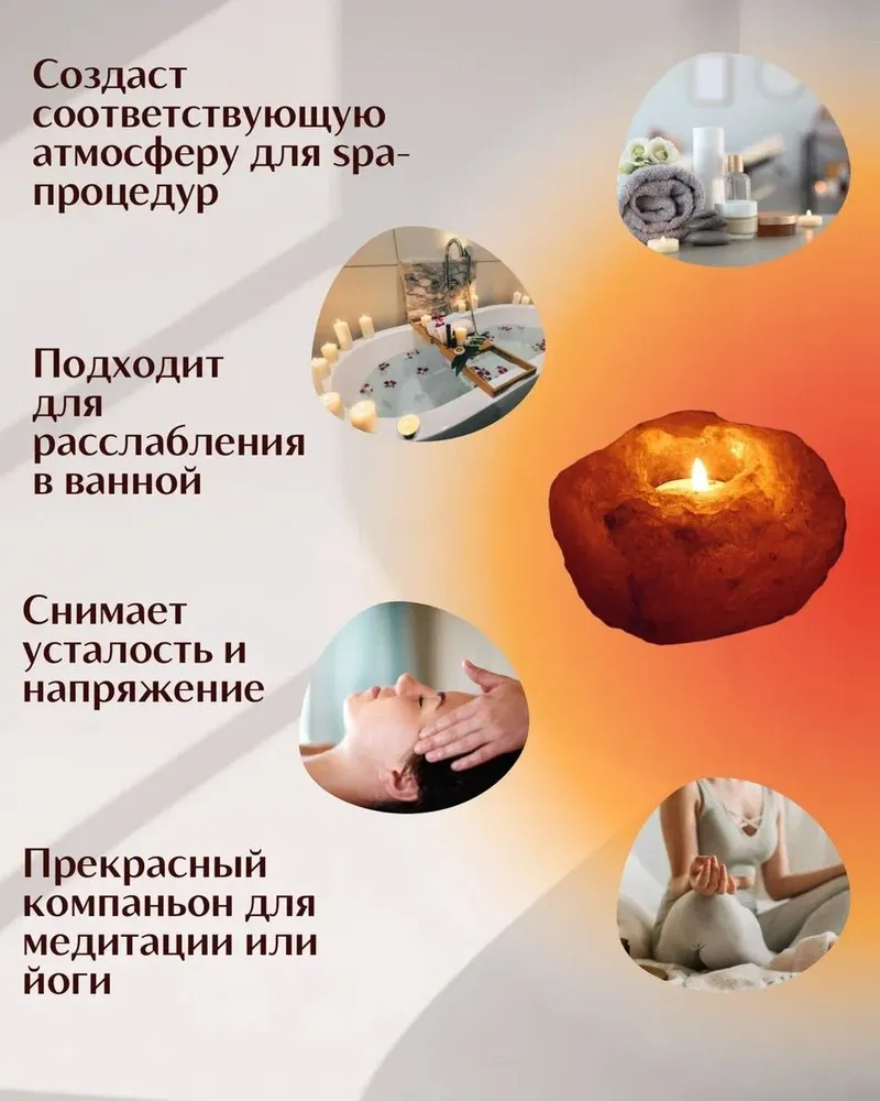 Помимо своих визуальных качеств, солевой подсвечник обладает полезными свойствами. Гималайская соль известна своими целебными характеристиками: она помогает очищать воздух, устраняя вредные примеси и насыщая его полезными микроэлементами. Это делает подсвечник отличным дополнением для пространства, где вы проводите время с близкими, а также для медитации и релаксации.