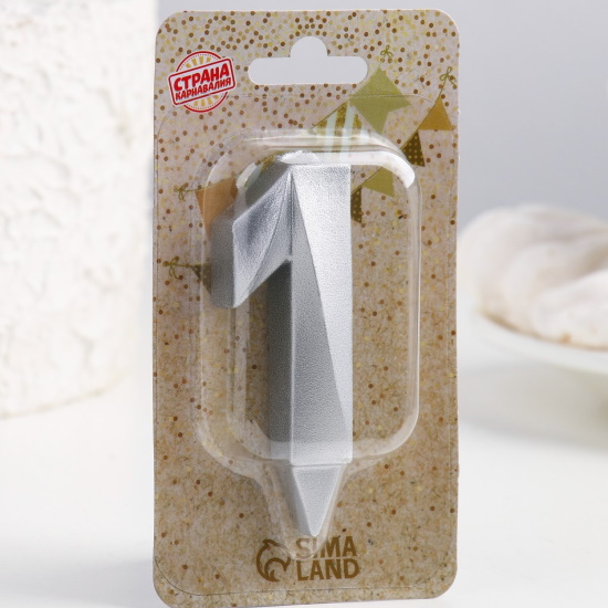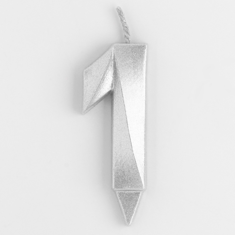 Свеча цифра 1 Грани, Серебро, 6.5 см