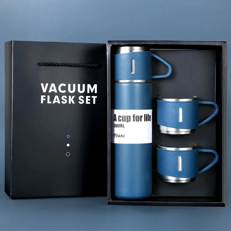 Набор Термос 500 мл и 3 чашки Синий