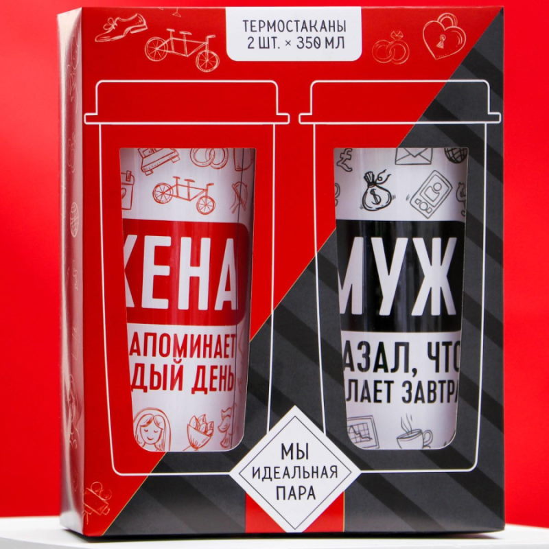 Набор термостаканов Муж и жена, 350 мл