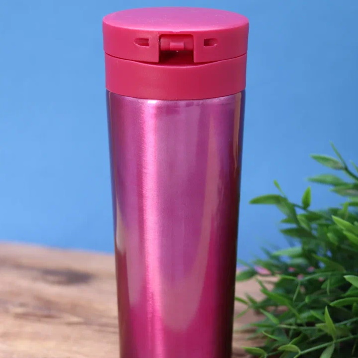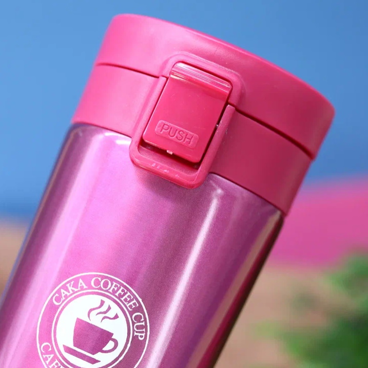 Кружка термос: внутренняя часть изготовлена из металла, который надолго сохраняет температуру напитка, а крышка - из качественного пищевого пластика. Термокружка автомобильная - подходит для стандартного подстаканника. Термокружка герметична, а закрывающий элемент на крышке обеспечивает безопасность, защищая от случайного открытия в сумке. Термос кружка подходит для холодных и горячих напитков. Можно мыть в посудомоечной машине при небольшом температурном режиме. Термокружка походная: сохраняет тепло до 4 часов, холод - до 12 часов. Кружка пригодится в дороге, в офисе и на прогулке. Термокружка для автомобиля отличный подарок девушке! На дне, кружка термос имеет специальную прорезиненную основу предотвращающую царапины на поверхностях. Так же для защиты от непроизвольного нажатия кнопки, термостакан имеет специальный защитный замок-предохранитель.