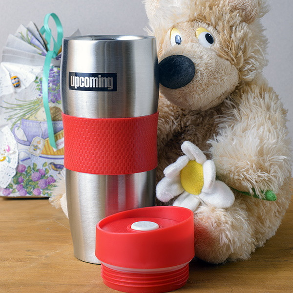 Корпус с двойными стенками из высококачественной нержавеющей стали. Цвет крышки: красный. Цвет корпуса: стальной, с черной шелкографией. Вакуумная колба из высококачественной нержавеющей стали. Крышка из высококачественного пластика на резьбе, с поилкой. Кнопка открывания/закрывания клапана. Оригинальный механизм не допускающий протекания жидкости даже в случае опрокидывания кружки. Противоскользящее покрытие дна. Сохраняет температуру в течение 4-5 часов.