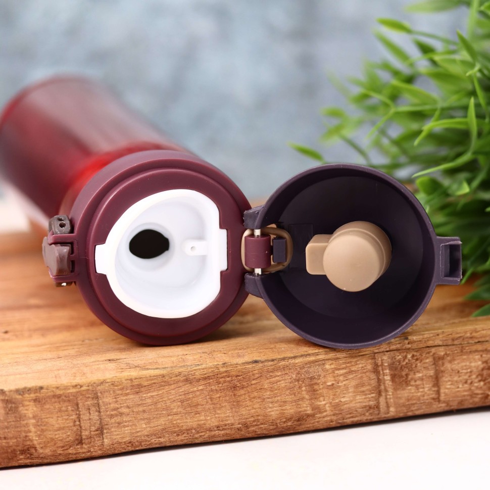 Термос идеально подходит для хранения как горячих, так и холодных напитков. Крышка и горлышко выполнены из прочного пластика, а специальная блокировка предотвращает случайное открытие, при этом блокатор должен быть направлен вверх для безопасного использования. Удобный поильник позволяет пить напрямую из термоса, минуя чашку.