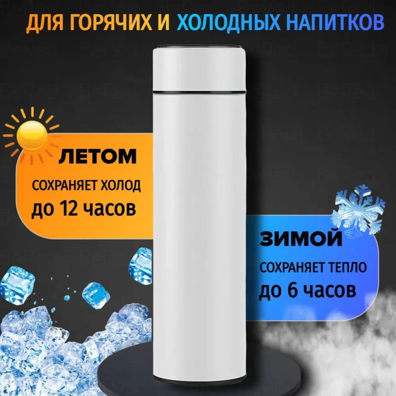 Термос за счет своей компактности легко умещается в сумку или рюкзак. Благодаря встроенному на крышке индикатору температуры с LED экраном вы всегда будете знать температуру напитка. Металлический термос не только держит температуру горячим напиткам, но и сохраняет холодным. Главное полезное свойство, отличающее данную модель от многих других – этот термос с ситечком. Подойдет термос для заваривания или процеживания любых напитков.