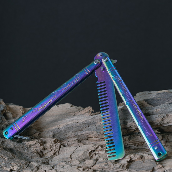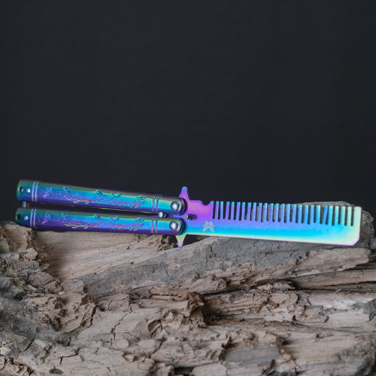 Расчёска бабочка это необычного вида нож, где вместо лезвия у него расческа. Отлично подойдет для тех, кто решил заняться флиппингом (необычные трюки с бабочкой), но не уверен или боится случайно порезаться в процессе обучения.