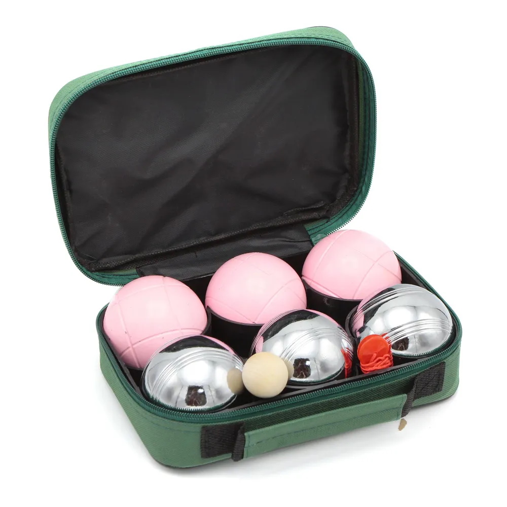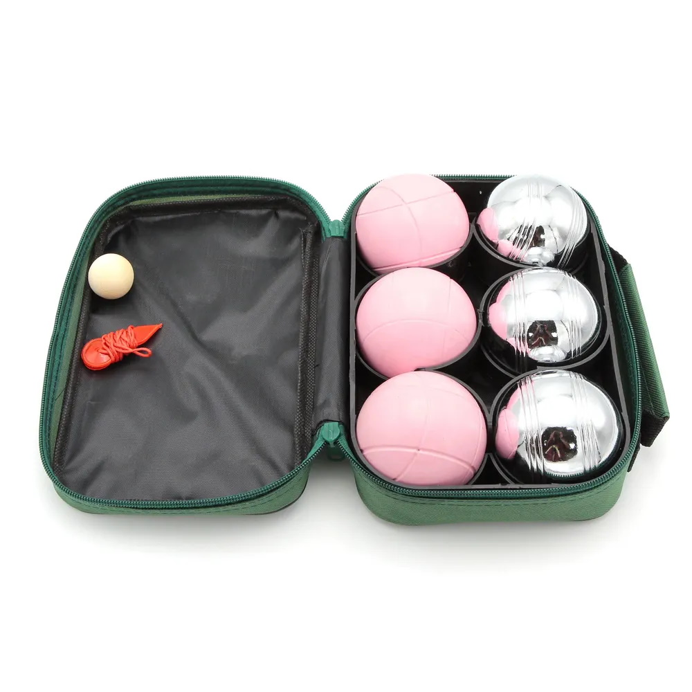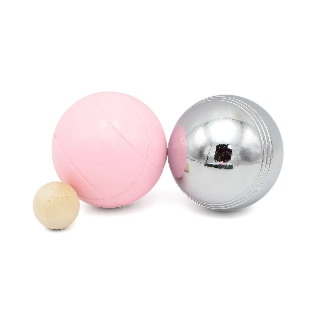 Боча Петанк 6 шаров в сумке. Серебро с розовым