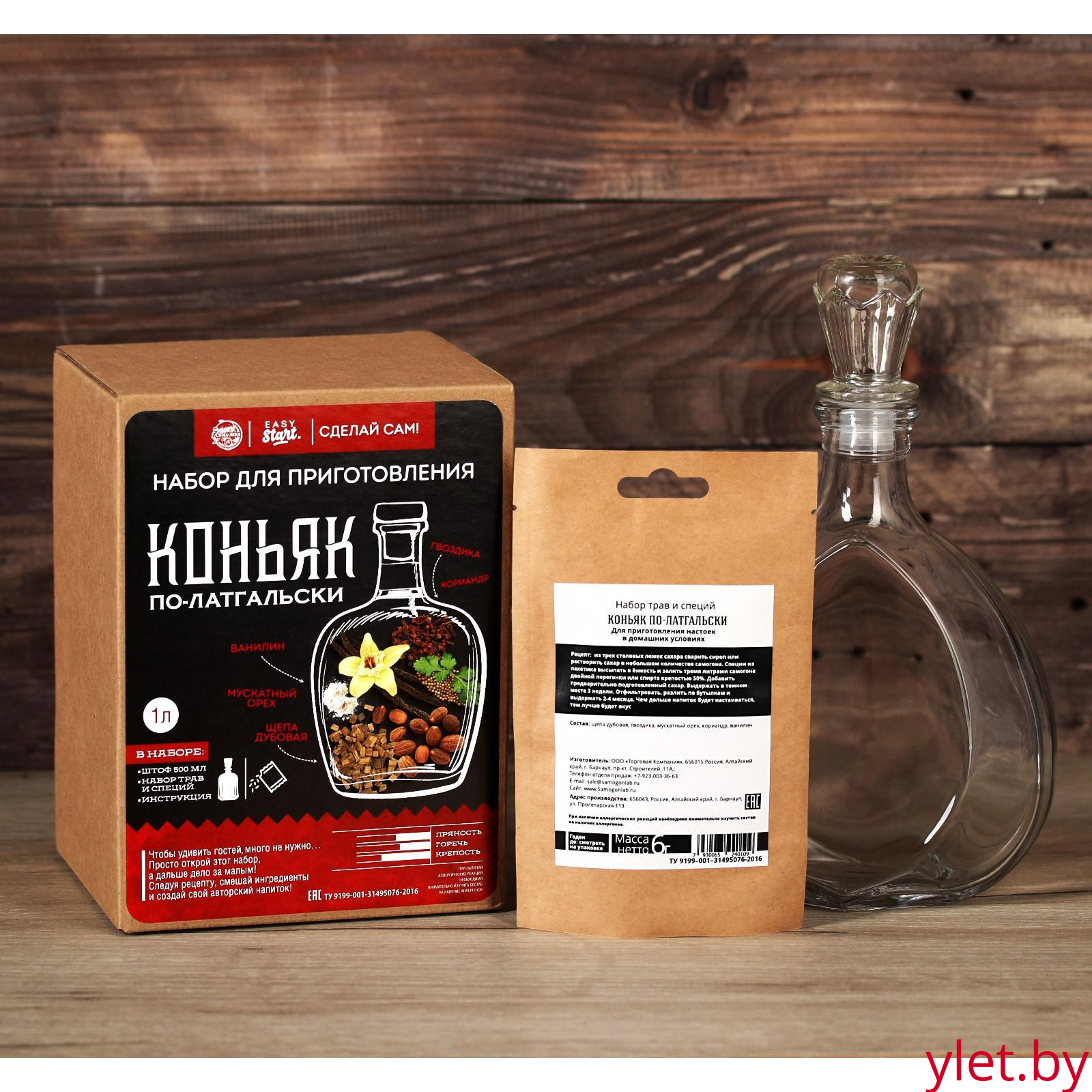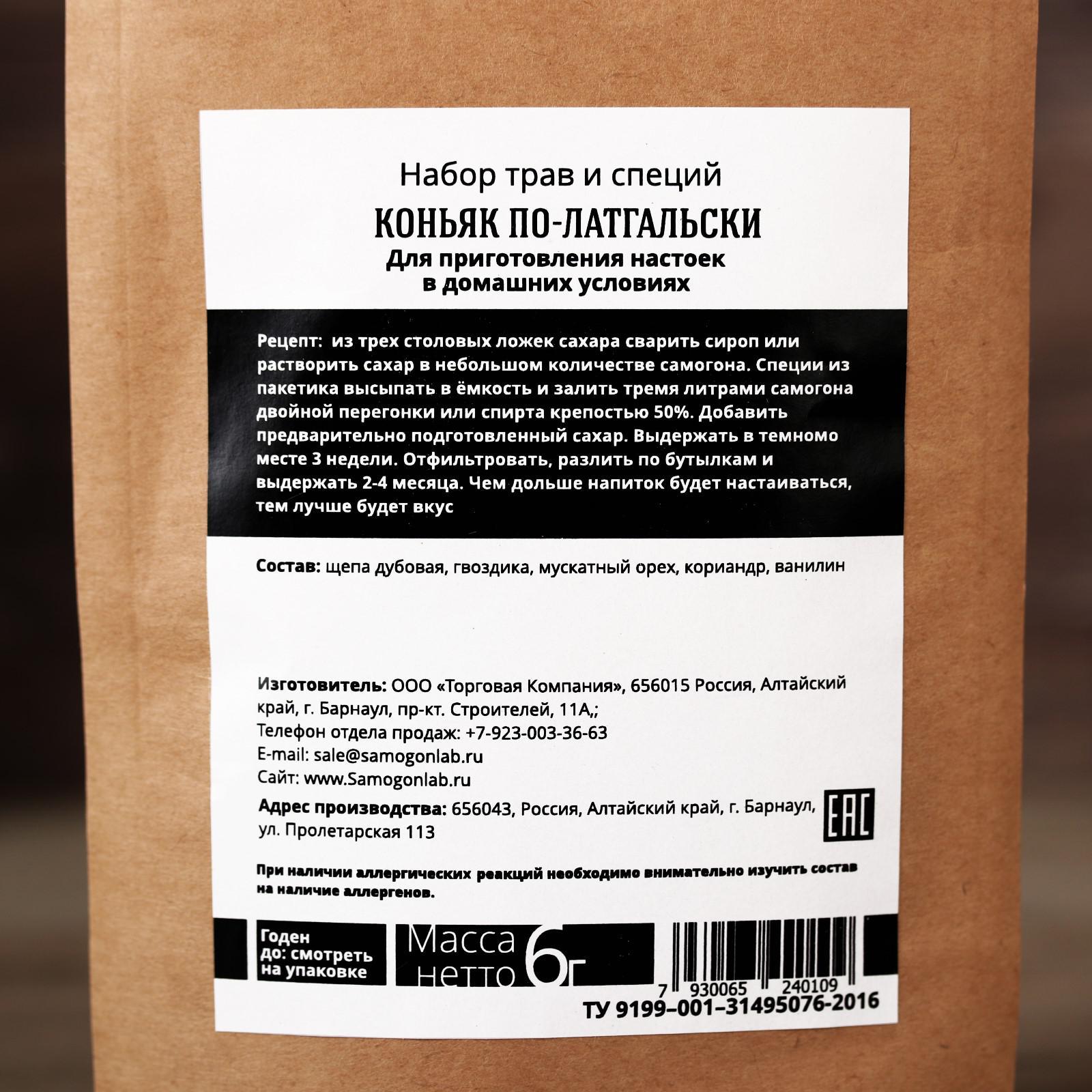 Набор для приготовления алкоголя «Коньяк по-латгальски»: набор трав и специй 6 г., штоф 500 мл., инструкция