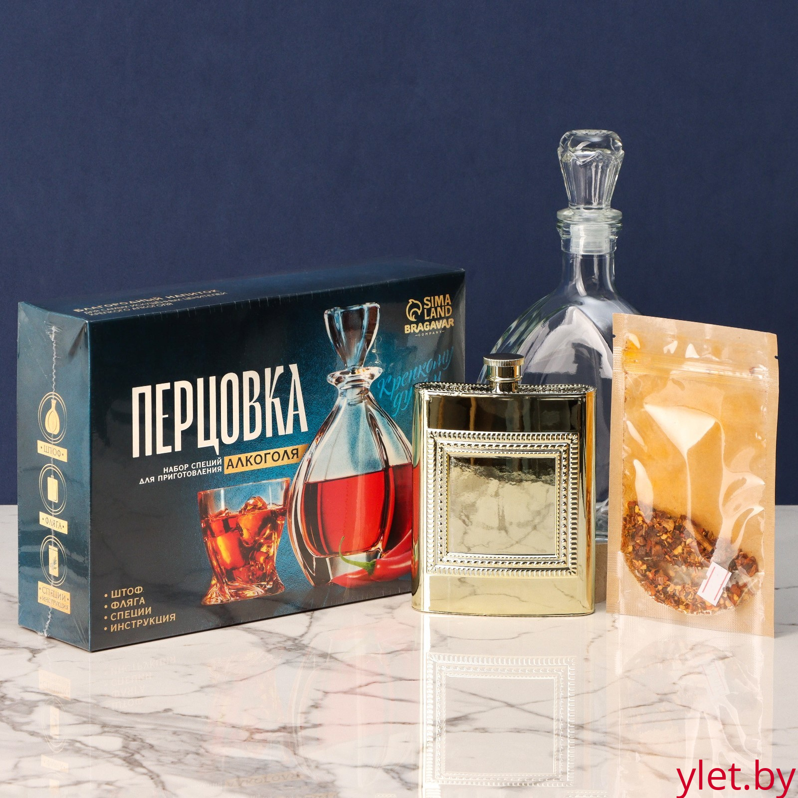 Набор для приготовления алкоголя «Крепкому духом»: набор трав и специй 7 г., штоф 500 мл., фляжка 240 мл., инструкция