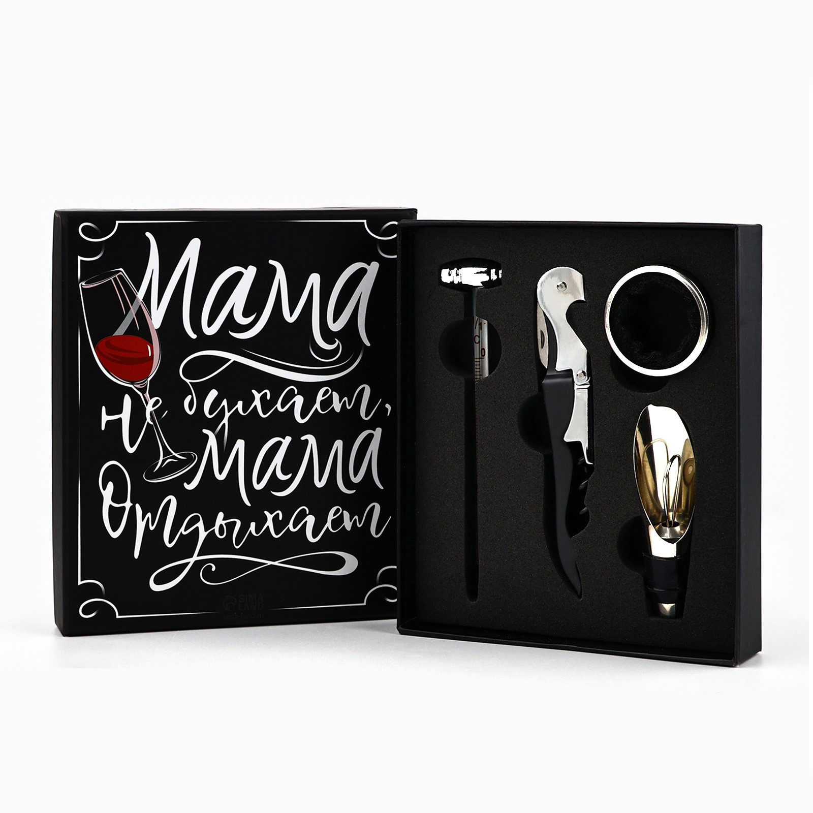 Подарочный винный набор «Мама отдыхает» — это не просто набор аксессуаров, а настоящее приглашение в мир изысканных винных традиций.