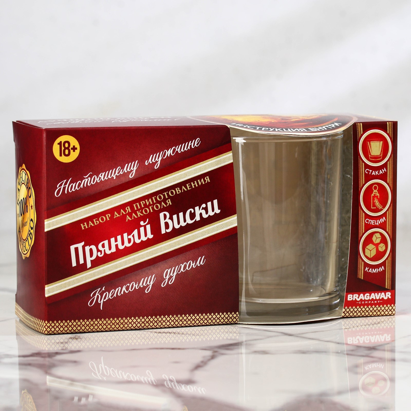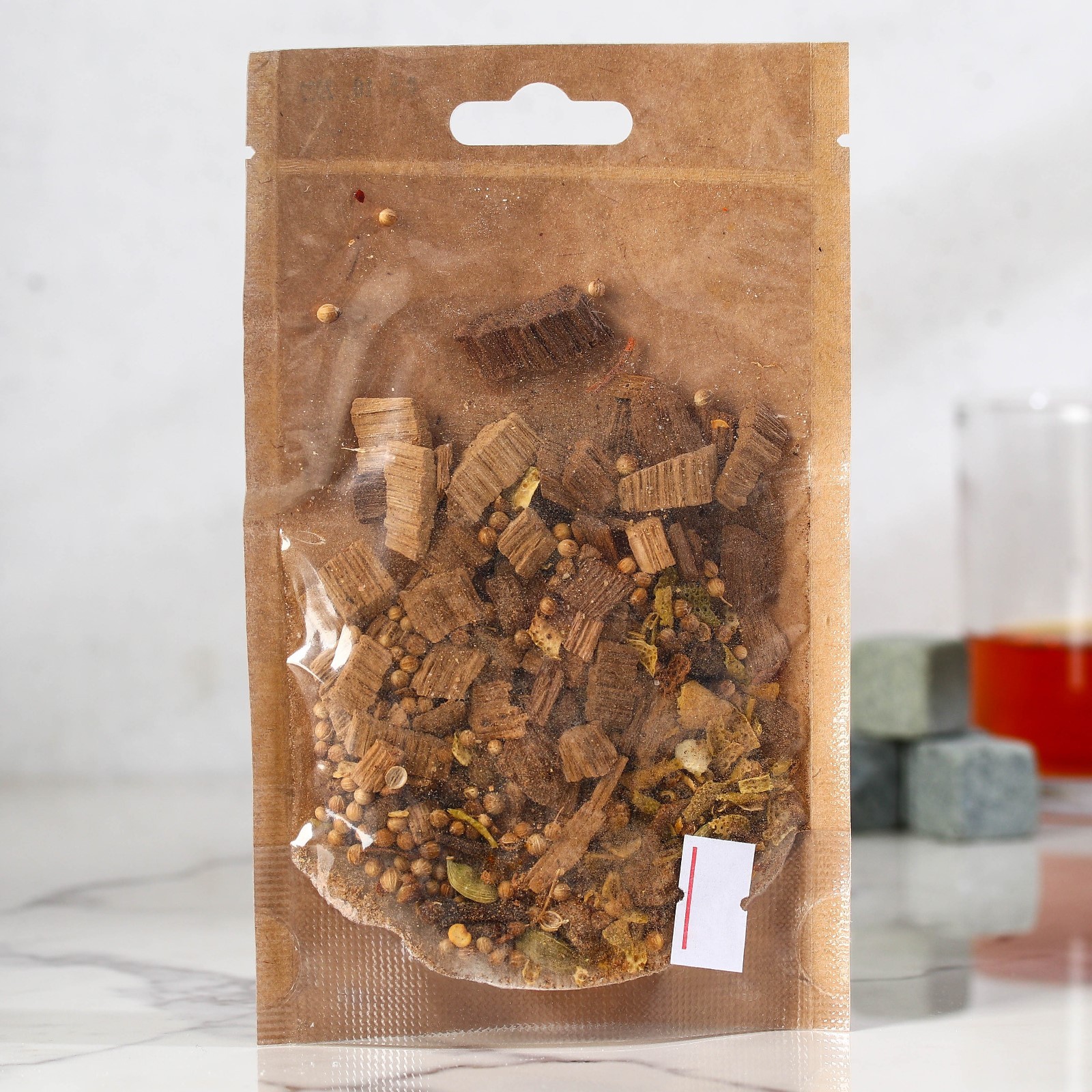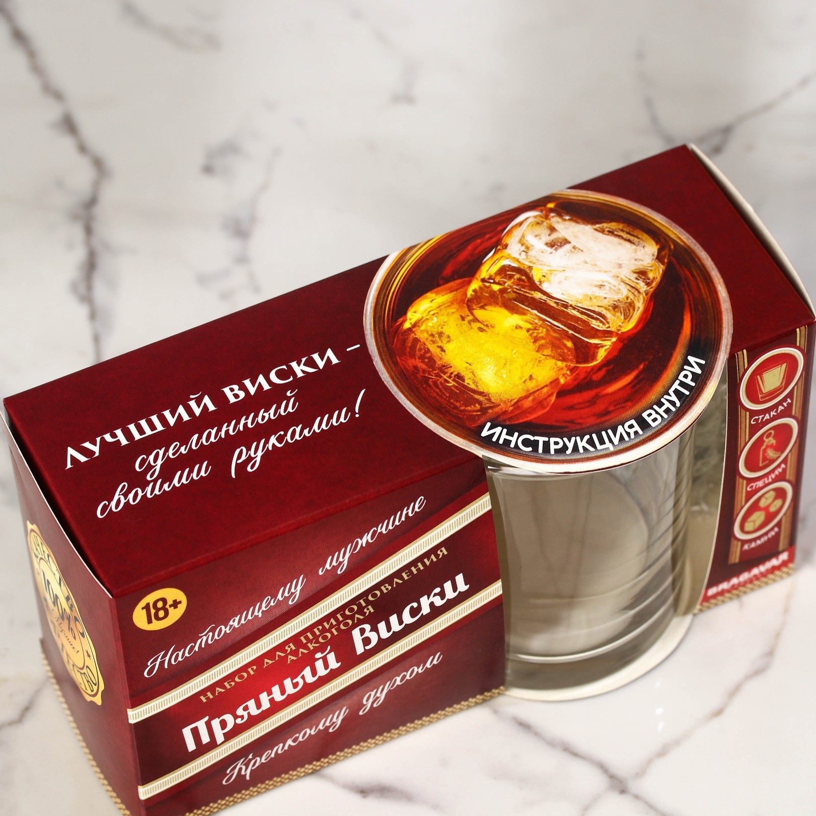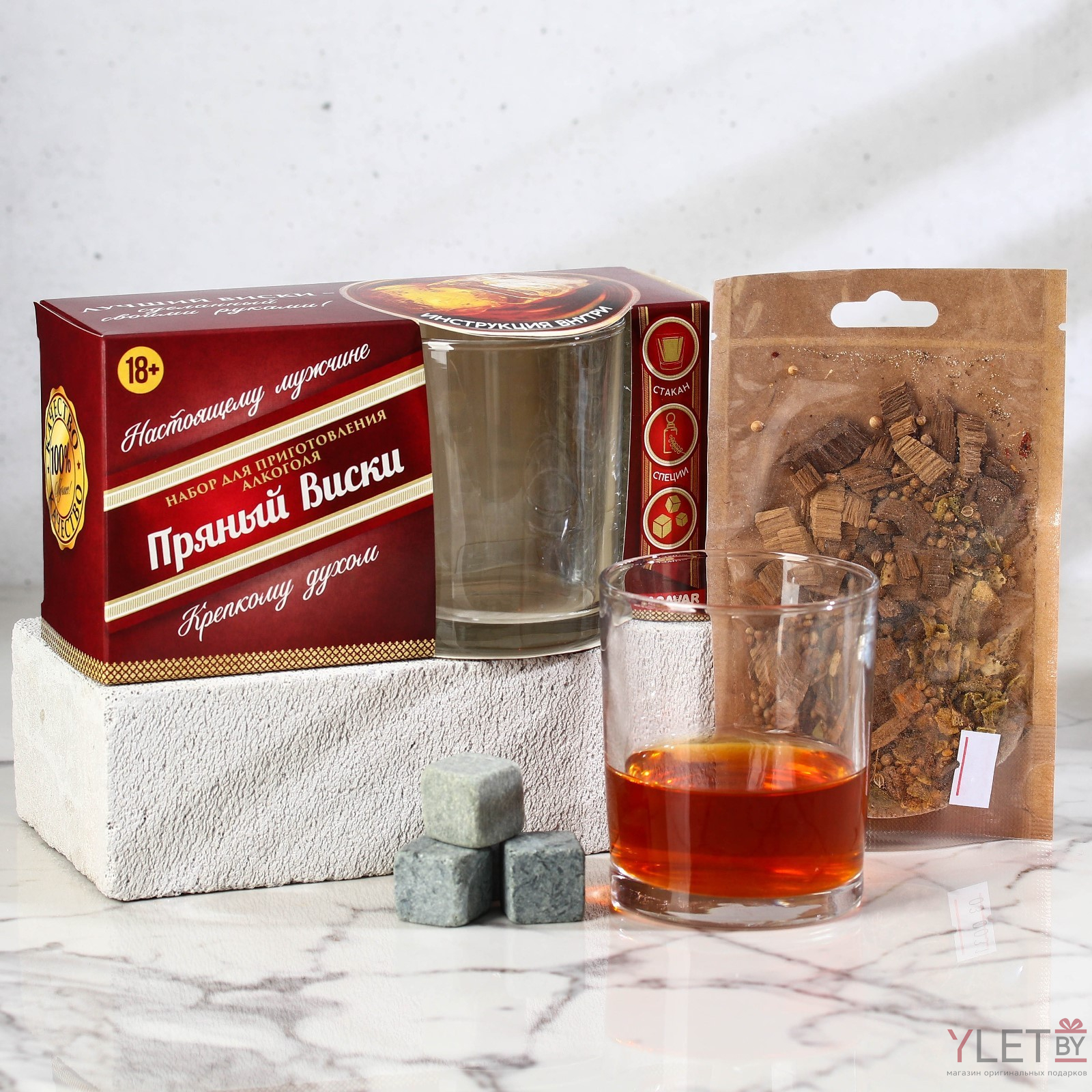 Подарочный набор для приготовления настойки «Пряный виски»: набор трав и специй 19 г., стакан 250 мл., камни 4 шт.