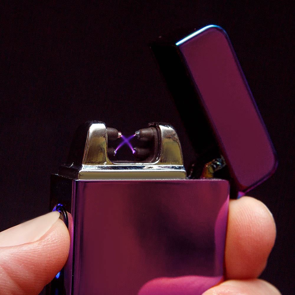 Двойная электронная дуга в плазменной электрической зажигалке способна поджечь любые предметы – сигареты, бумагу, хворост, ворс на ткани, на сильном ветре и в любой мороз.