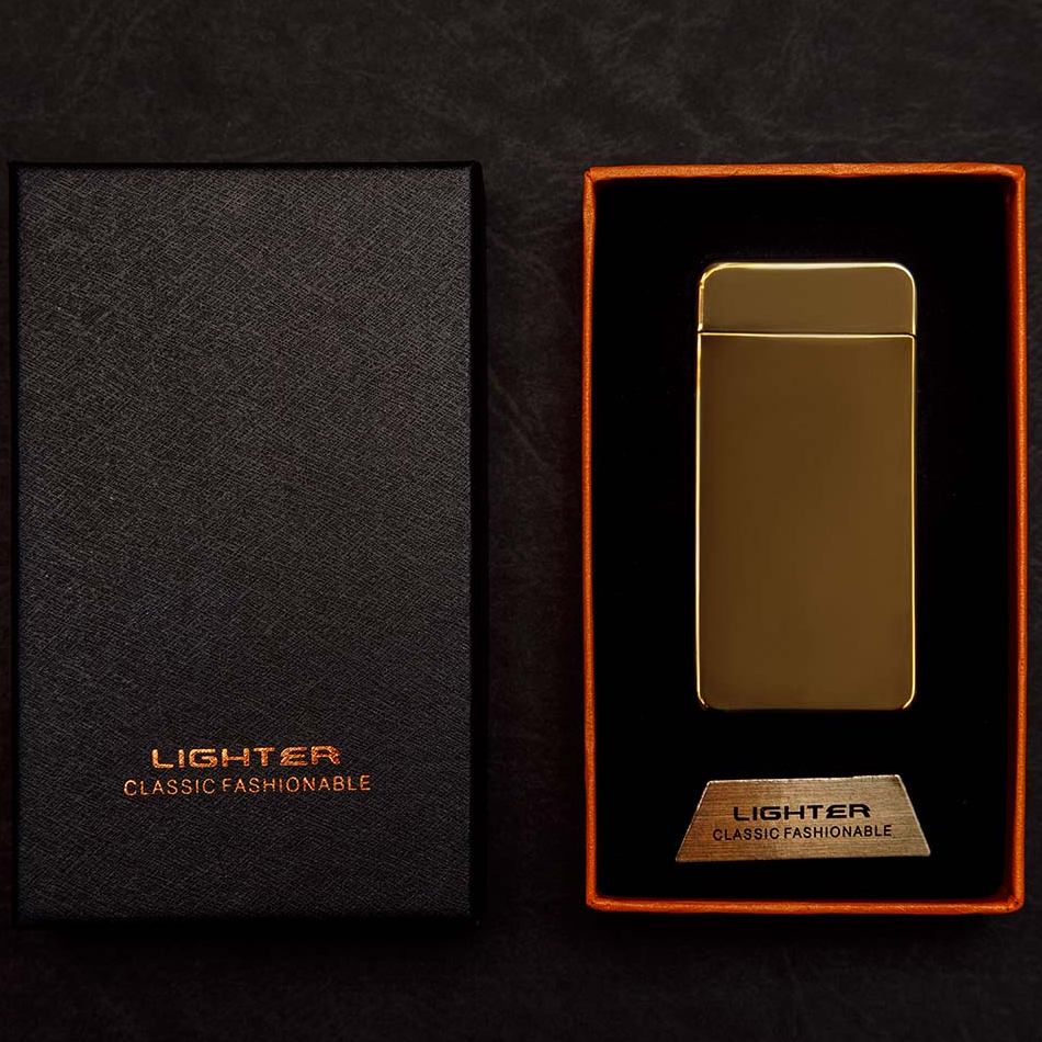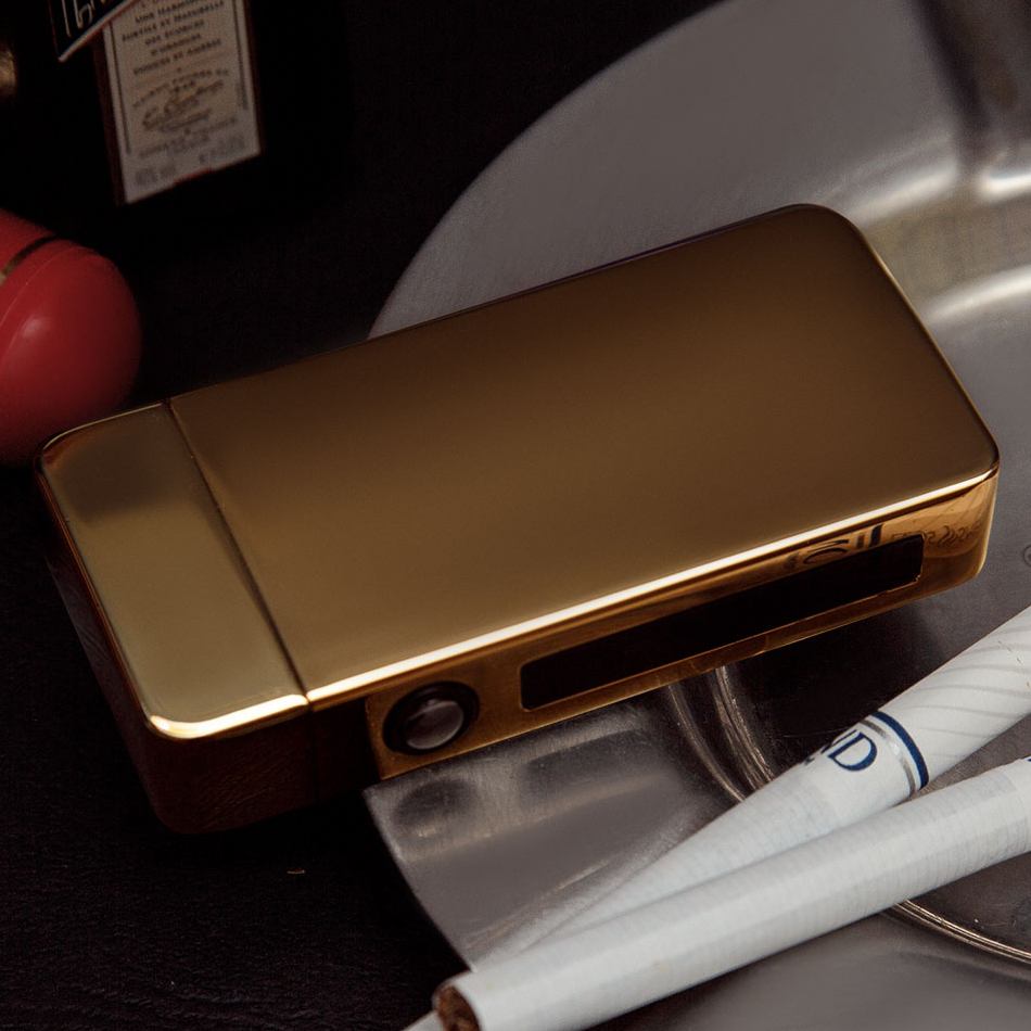 Импульсная зажигалка двойная дисплей сбоку Золотая глянцевая