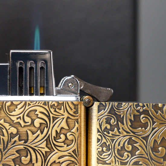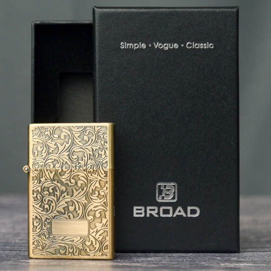 Зажигалка газовая турбо Broad квадратная Узоры Золото
