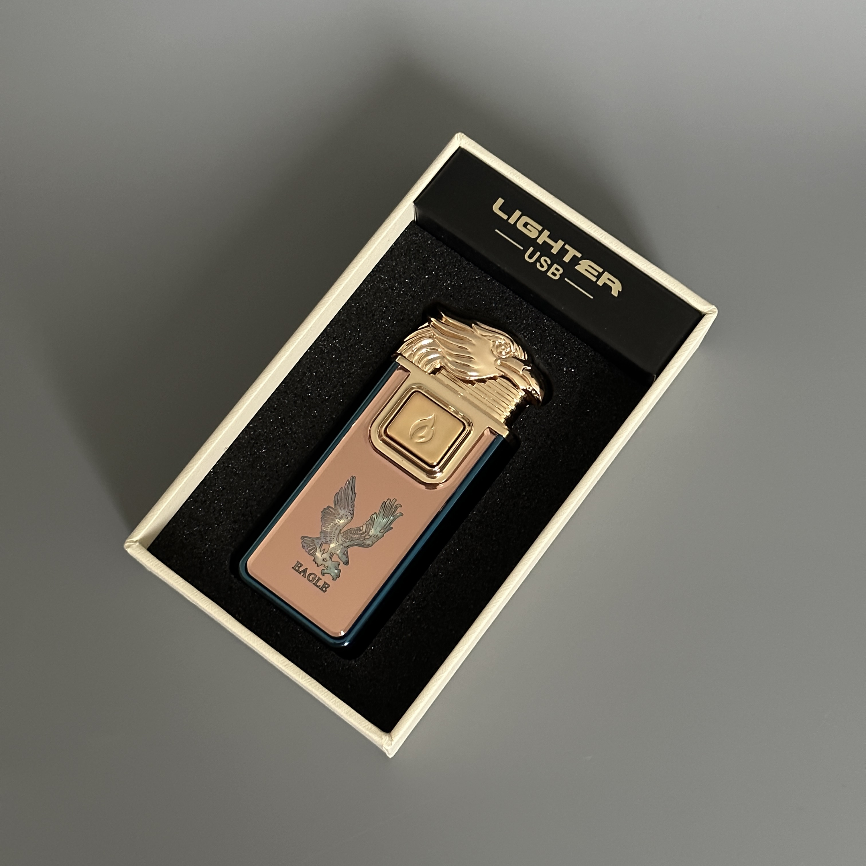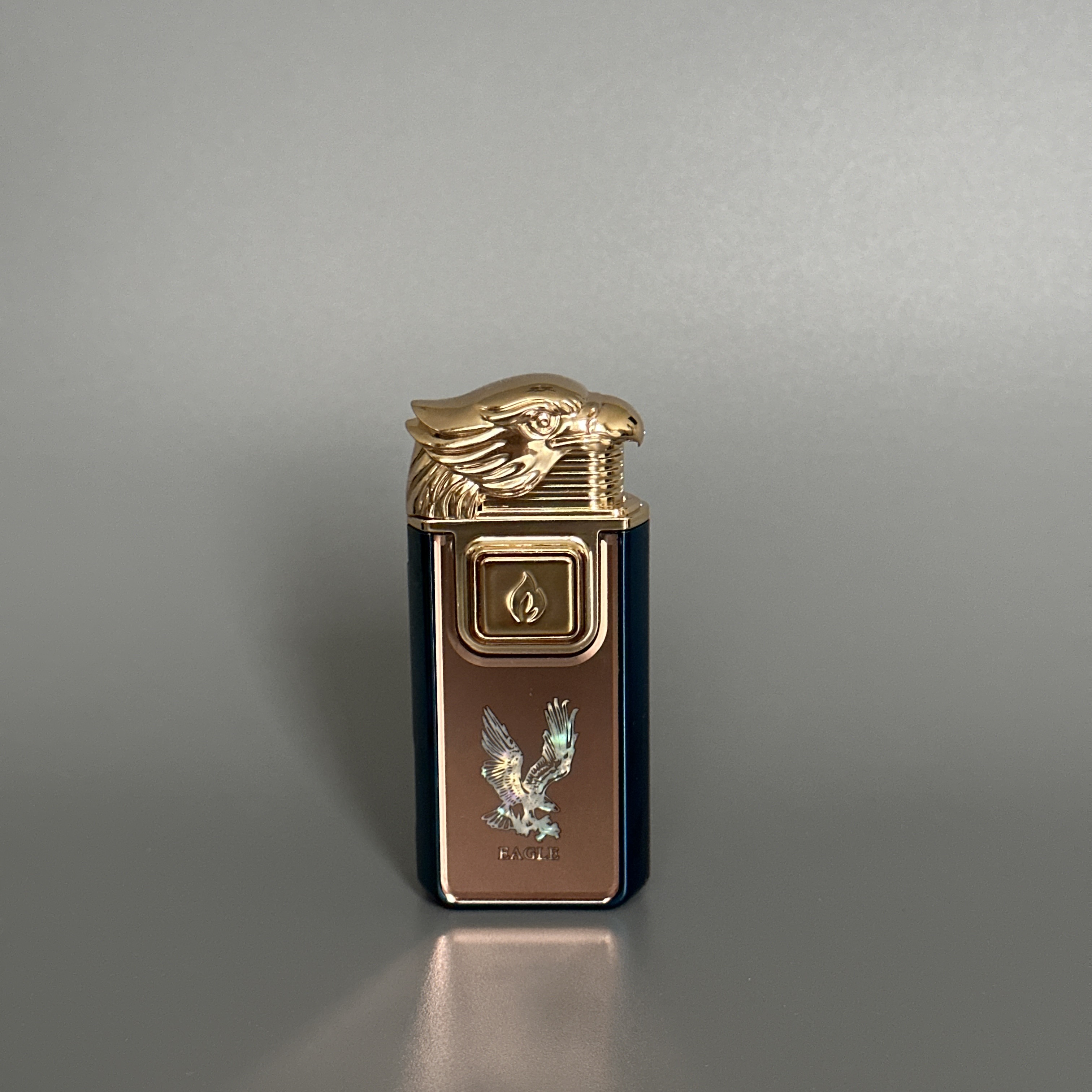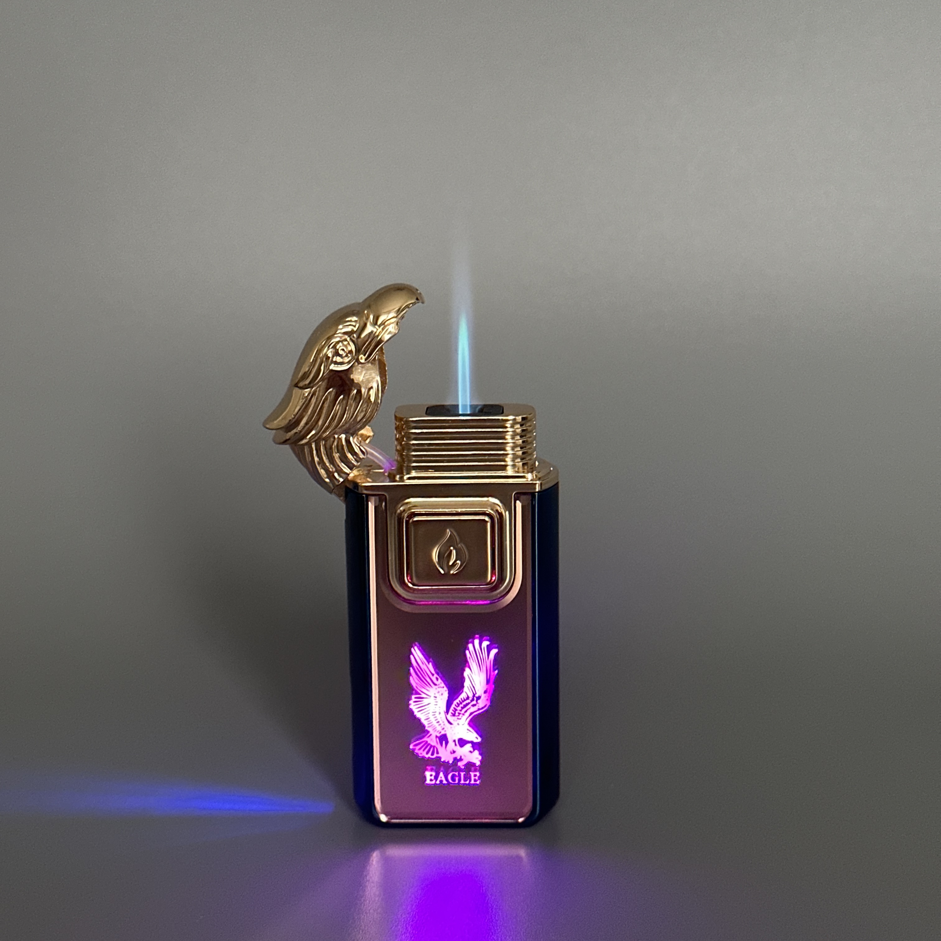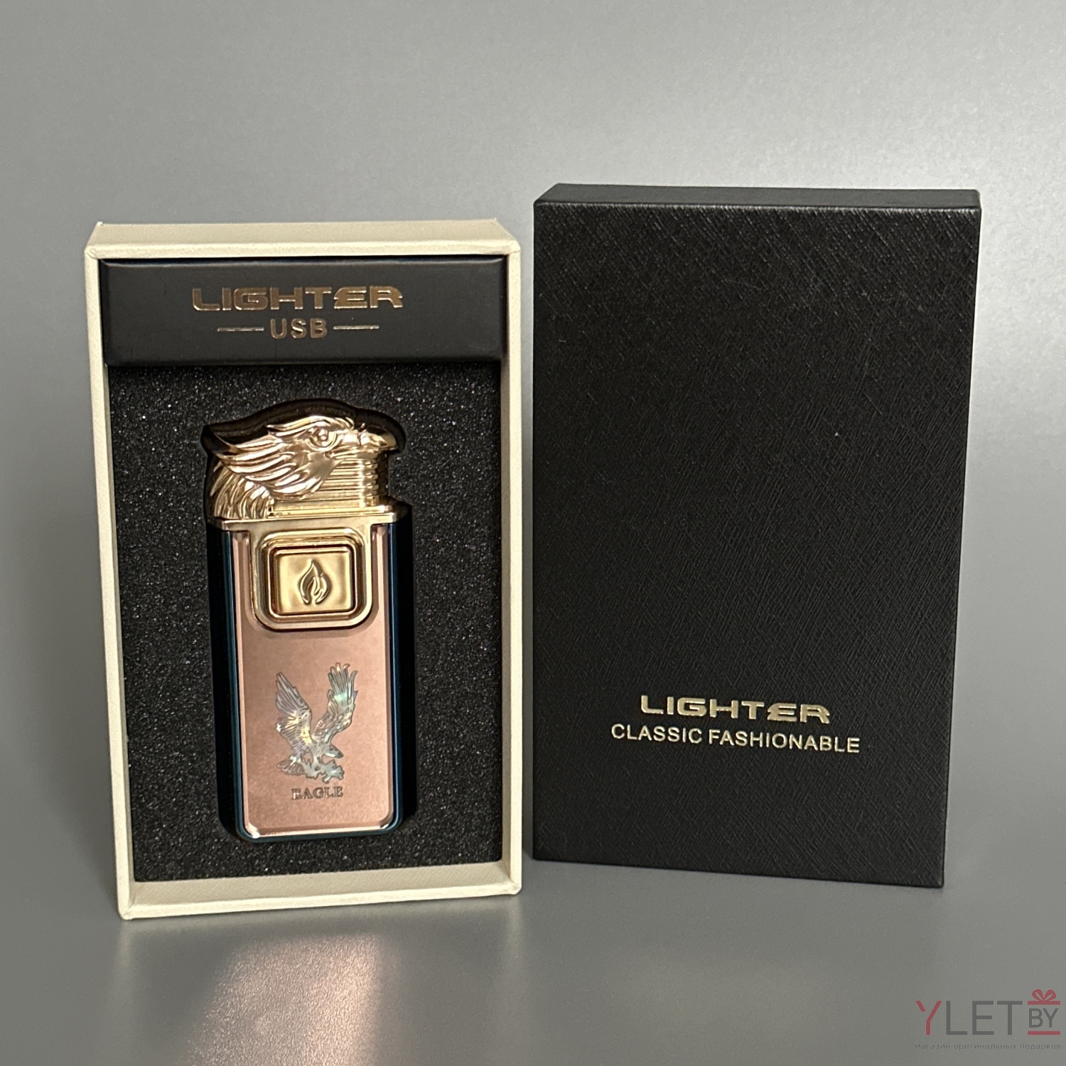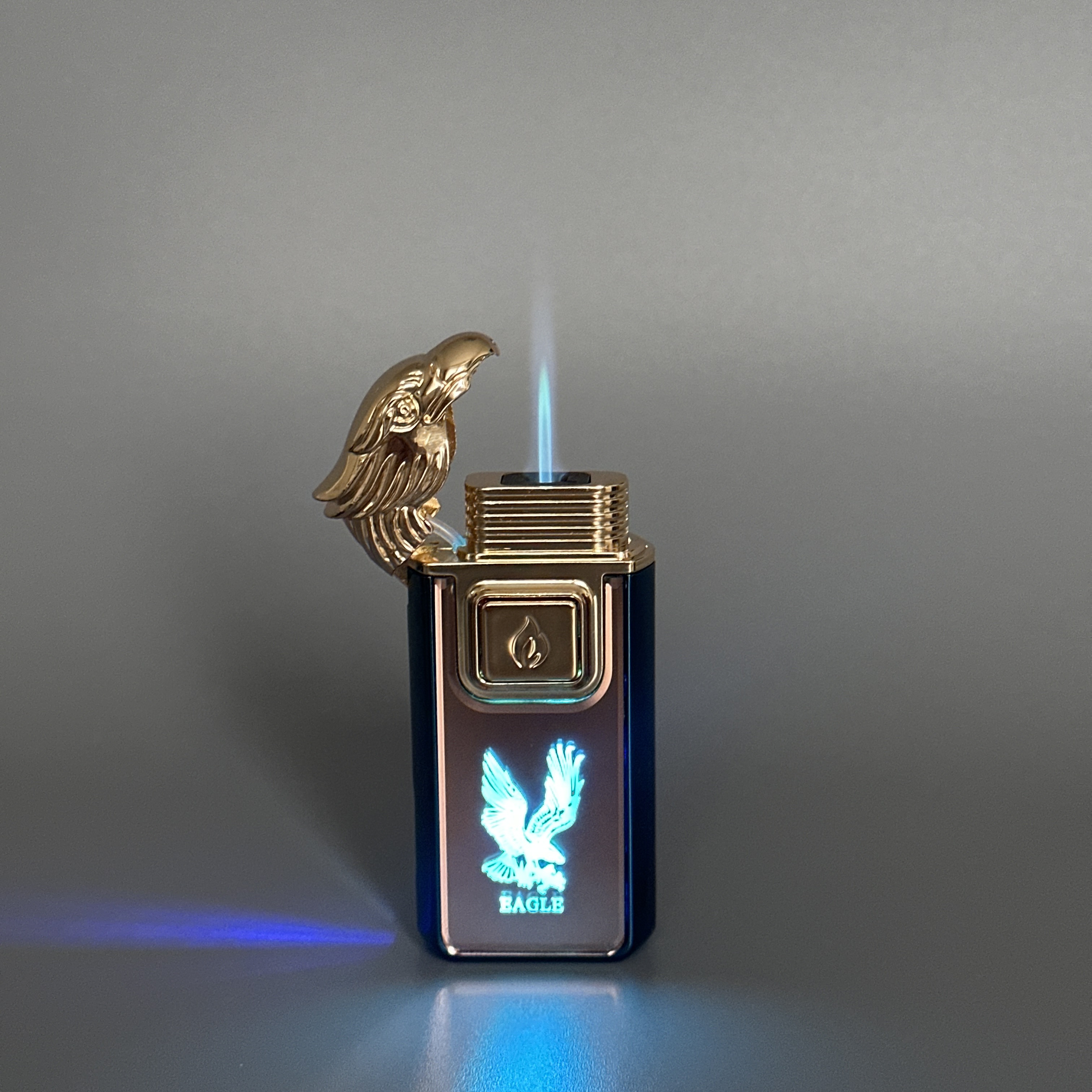Зажигалка турбо газовая+обычное пламя Голова орла, бронза и синий, эмблема орла
